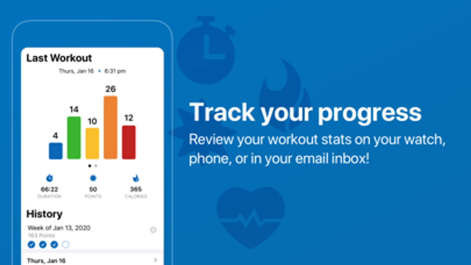 Users can opt-in to receive an (optional) email summary of every workout showing details stats such as calories burned, minutes in zones, and points.