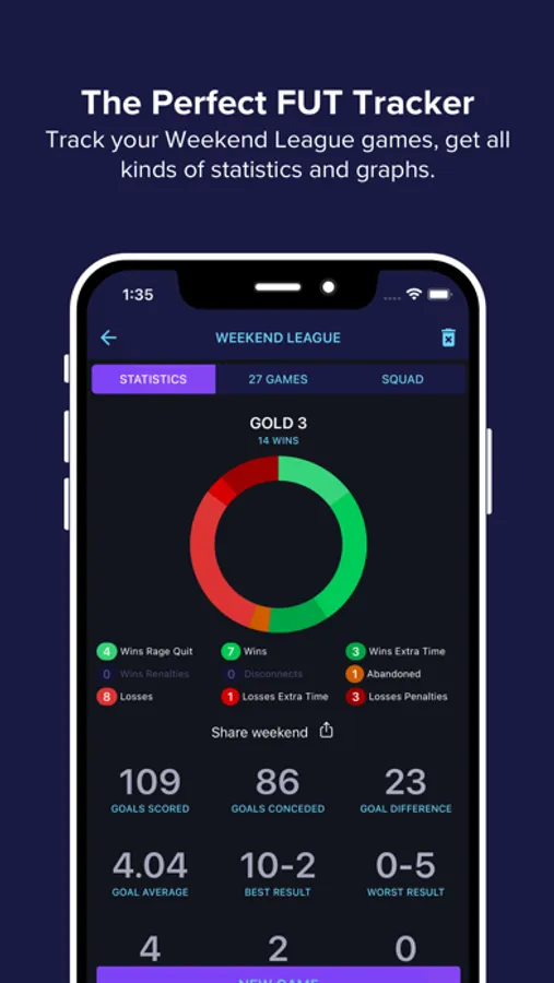 Track your Weekend League, save games and get statistics and analyze your Ultimate Team 21 performance.