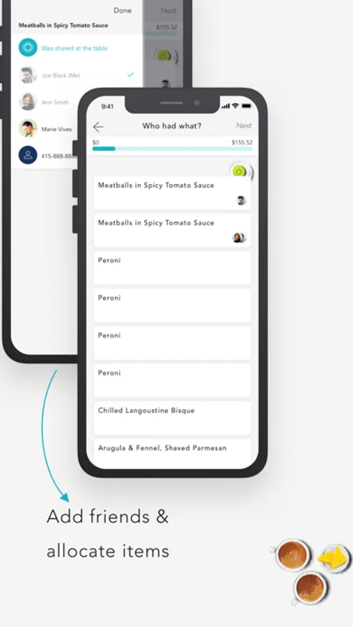 - Assign each person in the group to the items they ordered, or mark an item as shared by everyone.