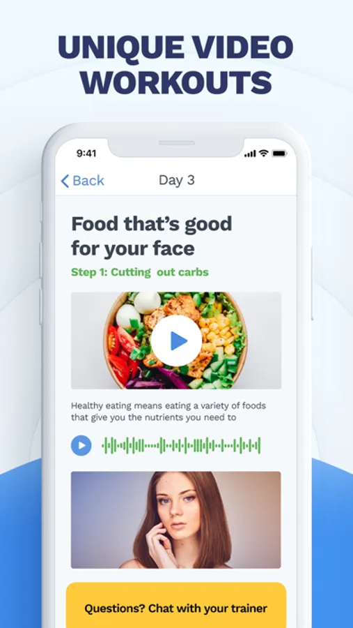 Try the app 3 days for free! Get a consultation by the trainer and set your facial rejuvenation goals!