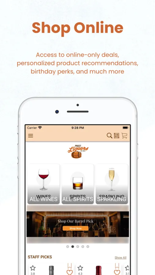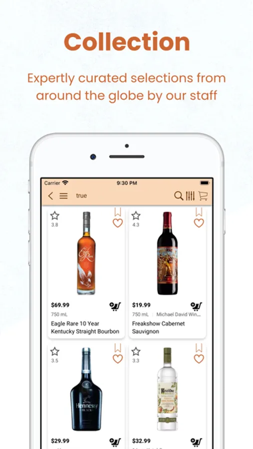 With the App you can browse for the wines & spirits available in the store, and also order a delivery or pickup.
