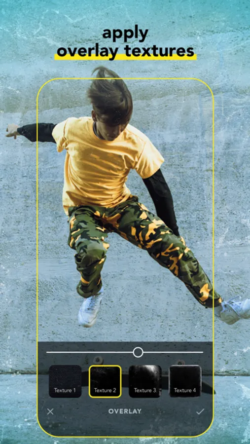 - Trendy filter and overlay textures for your photos & videos
