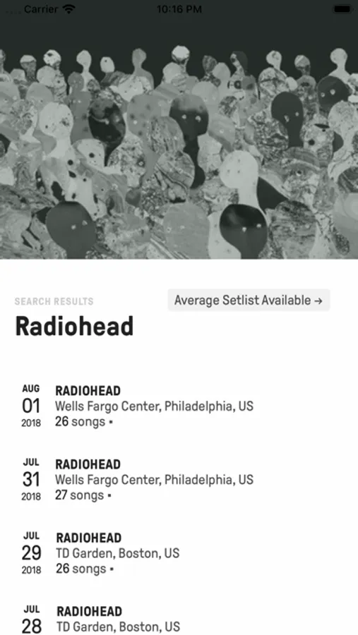Perfect for when you're getting ready to go to a gig and want to get an idea of the songs you'll hear, or for when you want to reminisce and listen to the setlist for a show you've been to in the past.