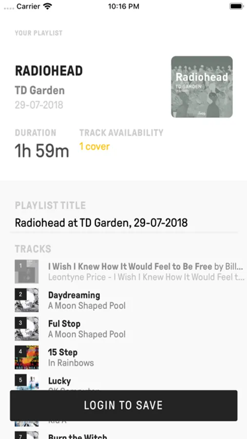 Setify has a bunch of useful features: it lets you know about any potential song mismatches; creates average setlists; and will even create a custom cover for your playlist.