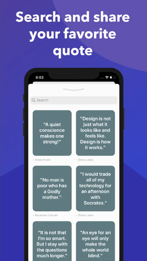 Whether you are want to be inspired by great people, facing hard times or like sharing inspirational quotes with the world, Quotify is perfect for you.