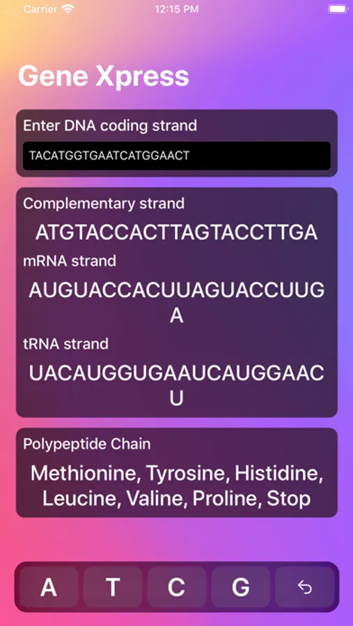 Gene Xpress lets you convert DNA to a polypeptide. Simply enter in your DNA template strand and your complementary strand, mRNA strand, tRNA strand, and polypeptide chain will instantly be created.