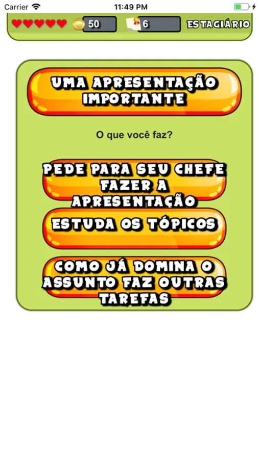CorpLife é um jogo de coaching que vai ajudar você a enfrentar dilemas e situações difíceis em um ambiente corporativo, de uma forma bem divertida. Se você quer crescer na vida profissional e ter a chance de tomar decisões em situações reais, comece a jogar agora mesmo.