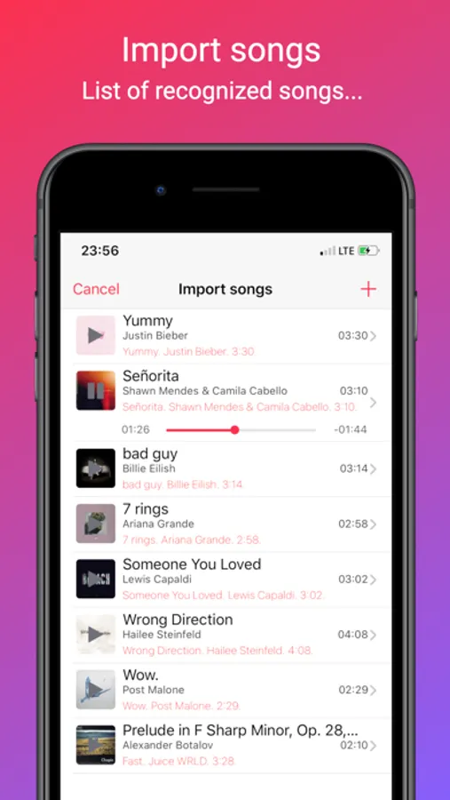 Each song title (+ artist name) must be on one line. The song import process looks for a song title in Apple Music service. For each song title, it selects one match and offers other possible songs. After you checking the search, enter the name of the new playlist and start the import process. Import adds songs from Apple Music to your library in one batch.
