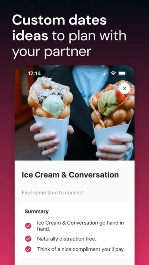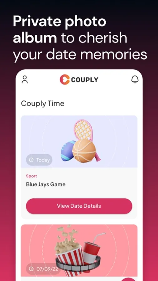 Couply will suggest custom date ideas and relationship articles based on you and your partner’s specific personality type. You can book these dates which are synced to both your calendars, right from Couply!