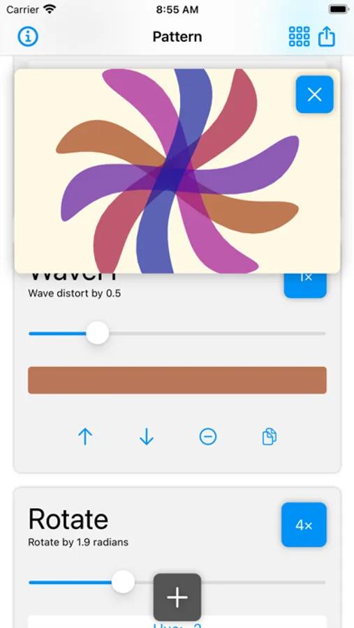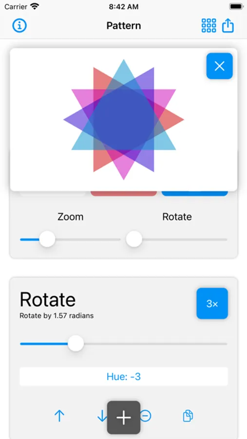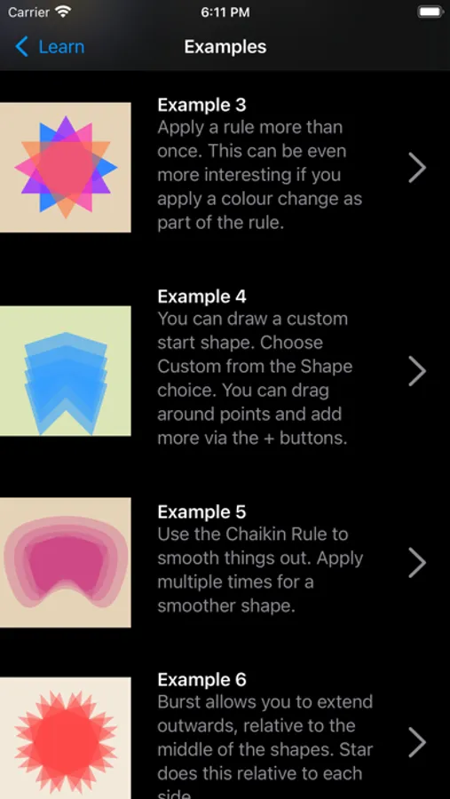 No Code Creative Coding/algorithmic art. Create beautiful patterns in minutes from simple rules. Start with a simple shape (or draw a fully custom one). Set its colour. Then apply a rule to it, for example: