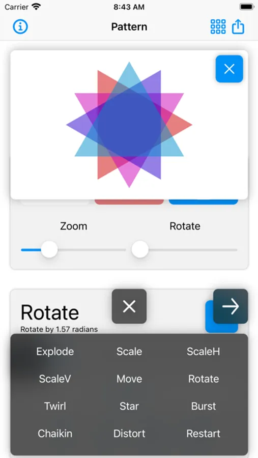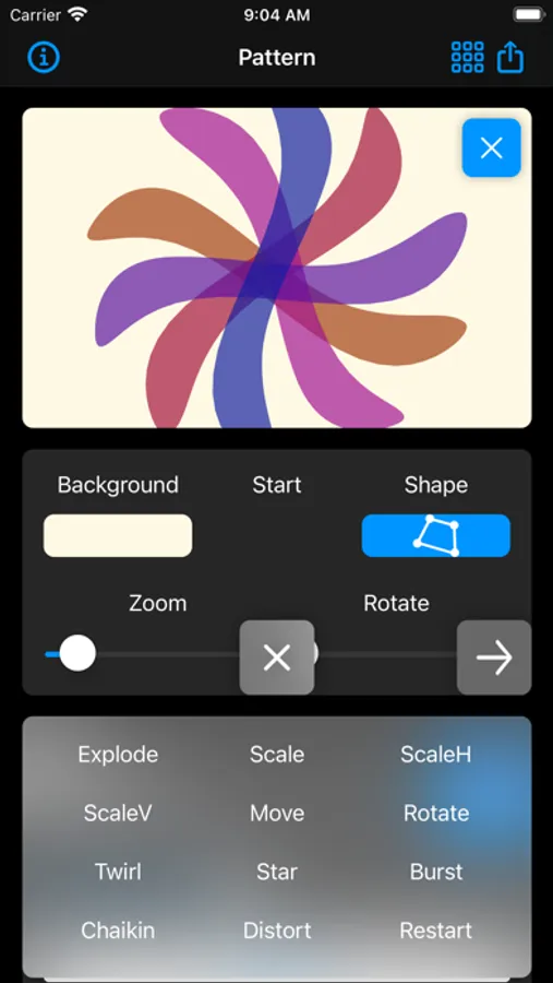 Star: Make a star-like shape from the last shape. You control the size of the points.
