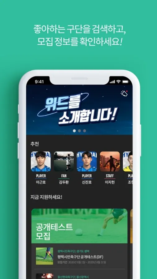 위드는 축구 선수와, 팬들을 위한 모두의 스포츠 앱입니다. 위드에서는