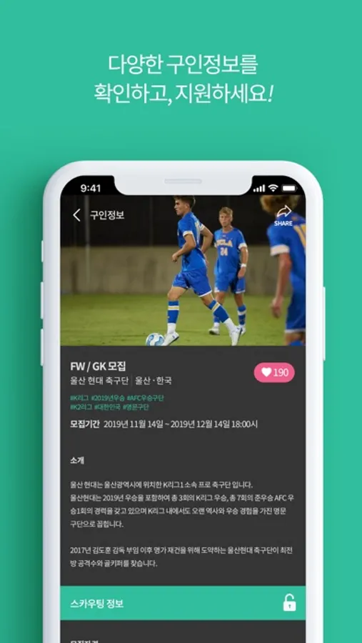 ㅡ 국내,외 많은 팀들의 스카우팅 정보를 간편하게 볼 수 있어요.