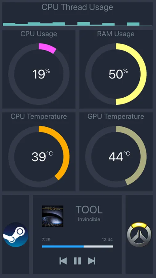 - Watch your hardware (CPU, GPU, RAM, ...) in real time using data from your favorite tools (GPU-Z, MSI Afterburner, Core Temp)