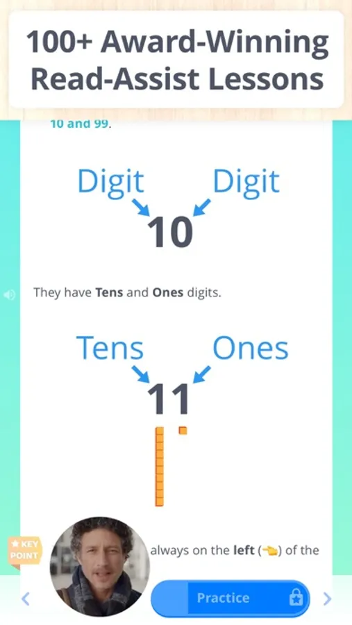 • 100+ award-winning ‘read-along’ lessons written for kids.