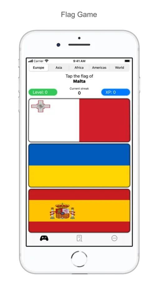 There are 5 different categories of games. Europe, Asia, Africa, Americas and the whole world. You gain 15 XP from a correct answer and lose 10 XP from a wrong answer. The correct answer is indicated by the spinning flag!