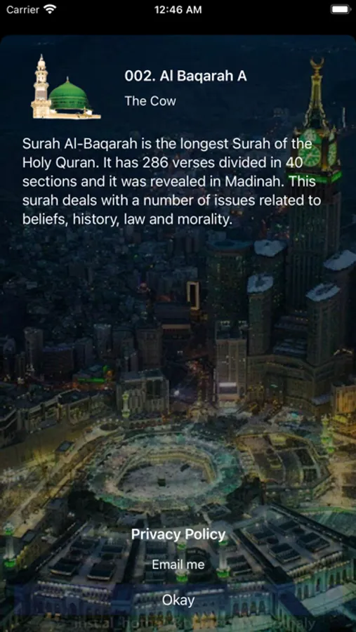 7. Makki surahs are indicated with kaabah (Holy Mosque in Mecca) image, madani surahs, i.e surahs revealed in Madinah have the masjid Nabawi image.