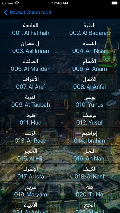 1. Below 114 Quran Surahs included and all of them play without internet connection: