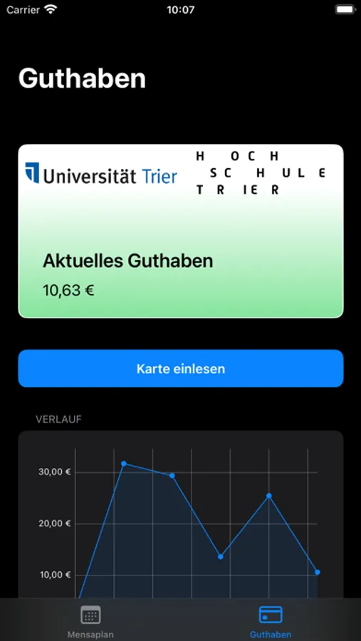 - Read the Mensa card to see the current balance*.