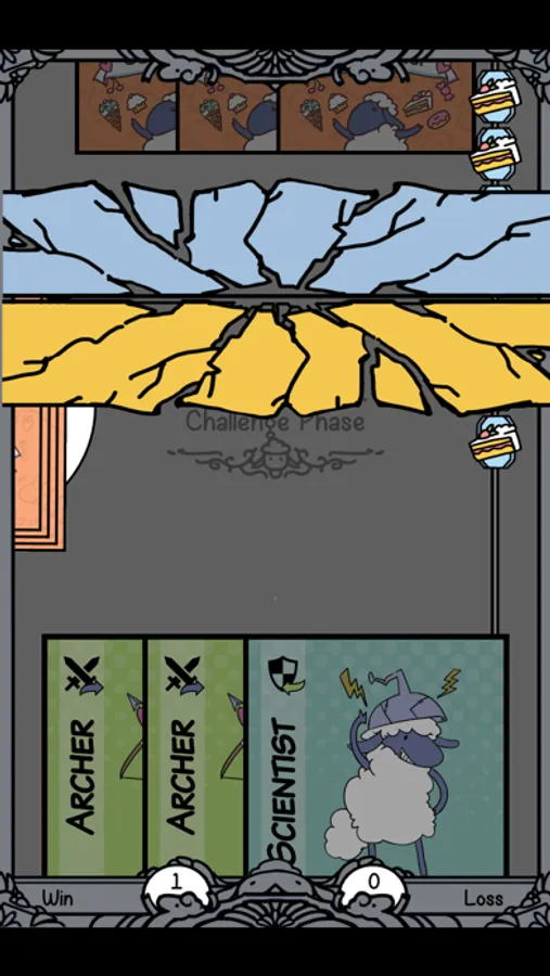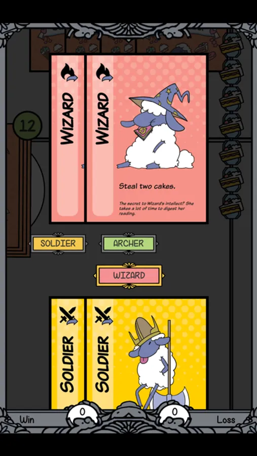 In Cake Duel, players take turns attacking each other with Archer, Soldier and Wizard Sheepie while the defending player blocks with Defenders and Scientists.