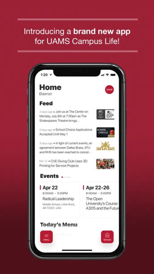 The event section shows a list of events throughout the district. Users can add an event to your calendar to share the event with friends and family with one tap.