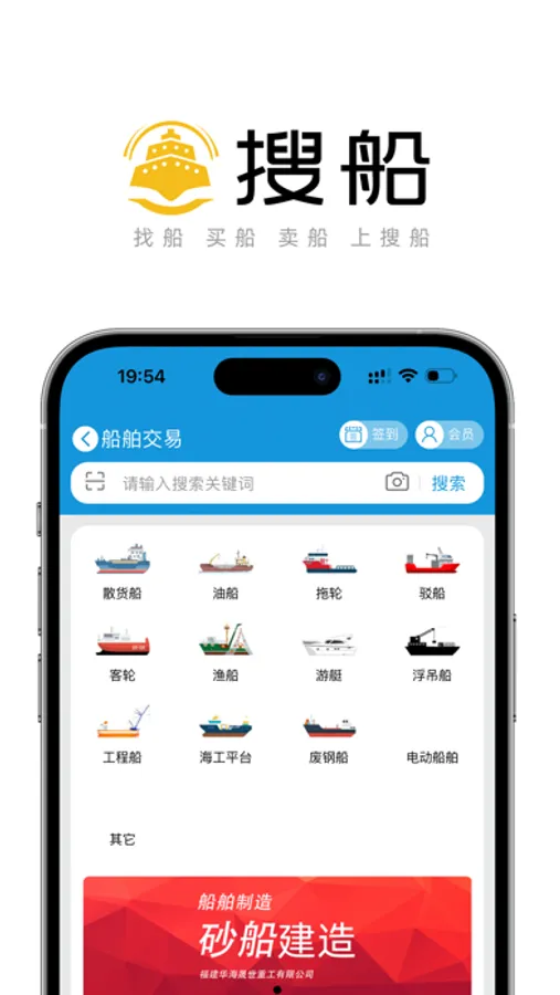 搜船APP提供船舶建造,船舶交易,船舶设备、船舶配套、造船修船、买船租船方面的相关信息,致力于帮助行业内客户及时了解船厂,船东,配套商的相关动态,及时发布造船,新船,二手船,废钢船等的相关最新信息,为客户提供一个最好的船舶行业门户网站,为船舶行业发展奋斗。