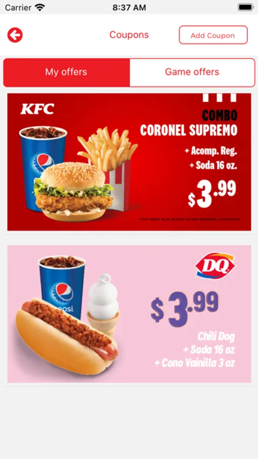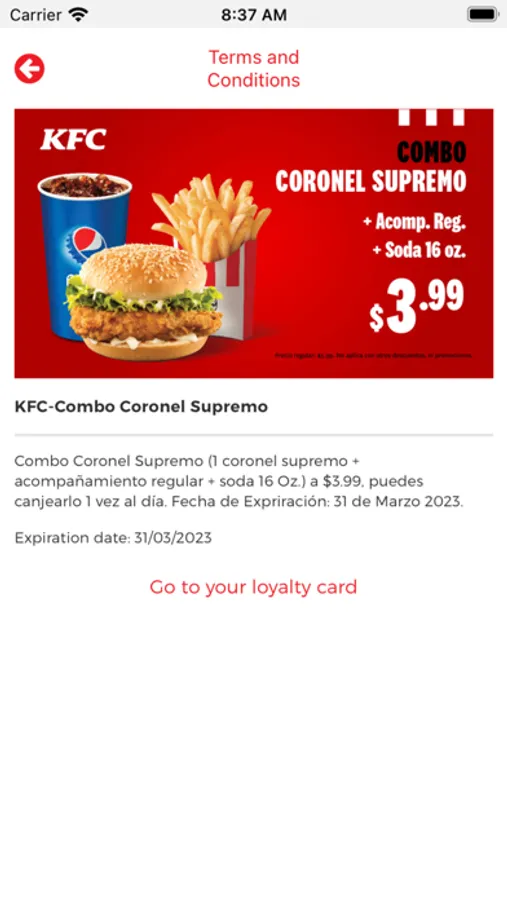 - Acumula puntos equivalentes al 5% del valor total de tu compra, que podrás canjear por productos en las marcas que prefieras (KFC, Pizza Hut, Dairy Queen y Chilli’s).