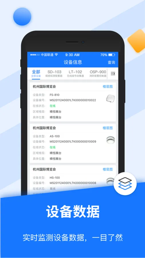 1、实时查看所有设备状态,让管理者实时掌握设备状态和消防安全等级。