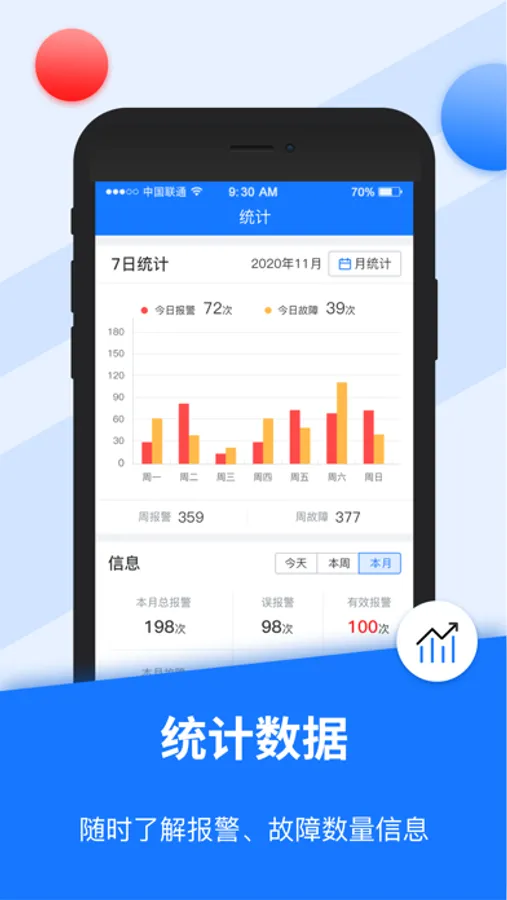 云端24小时对设备状态进行监控,实时推送设备异常和告警信息;