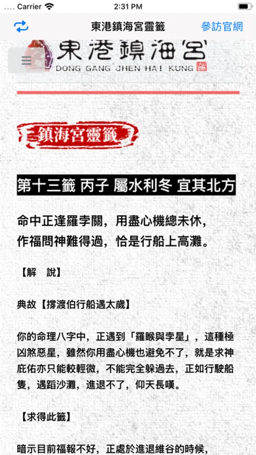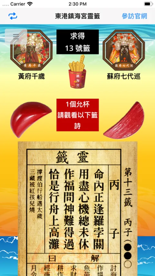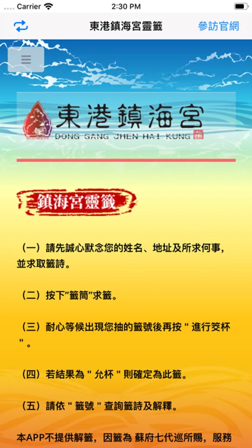 奉 鎮海宮蘇府七代巡指示成立手機APP靈籤功能以服務民眾。