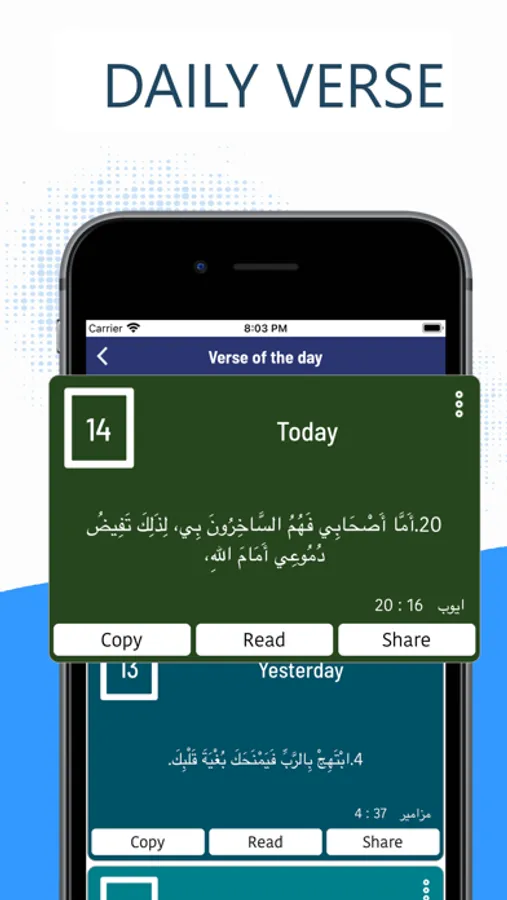 Start your day fresh with a Daily Verse and Carry your soft-copy of Holy Bible in Arabic with you anytime and anyplace you are or wish to go, and share God's Word to spread light and love to your close ones. Holy Bible in Arabic App offers immaculate friendly features that will make your daily Bible reading a wonderful experience. Download Now!