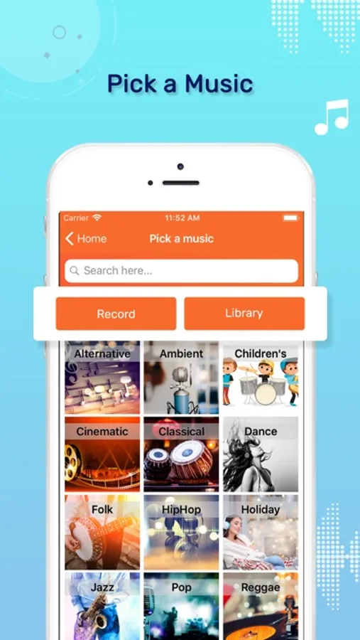 Step 4: Record enlists a variety of song choices of categories like Ambient, Cinematic, Classical, Dance, etc.
