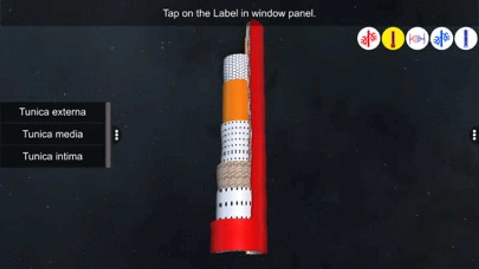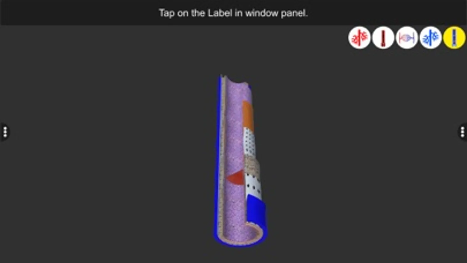 Let us explore the offerings of the 'Vascular system’ app. The user gets to interact with the 3D models of the vascular system comprising the arterial and venous systems. The user can explore the 3D models through the ‘rotate’, ‘zoom in’ and ‘zoom out’ options. The 3D models in the 'Vascular system’ app come with the desirable feature of ‘labels’. The labeling part is very important from the perspective of understanding anatomy of the systems. Tapping the labels on the model which displays the name of the part gives the user the understanding of the name and structure and function of the respective part. The labeling part of the 'Vascular system’ app equips the user to attempt the diagrammatic questions asked in the exams. 'Vascular system’ app consists of the labeling part of the arteries and veins of the body. The app also provides details of the parts of the capillary network. Also the structural composition of the arteries, veins and capillaries is dealt with in the 'Vascular system’ app.