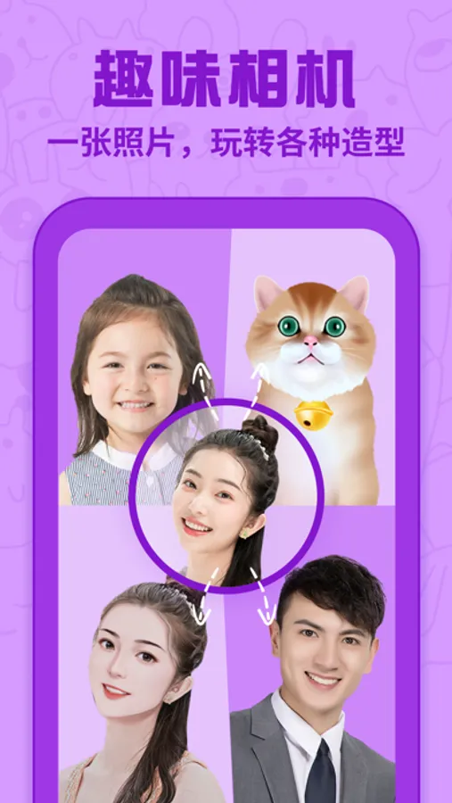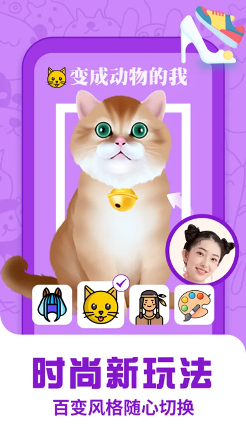 [Cute pet face change] Take a selfie to challenge various modeling styles; quickly realize face integration and experience the fun of synthesis