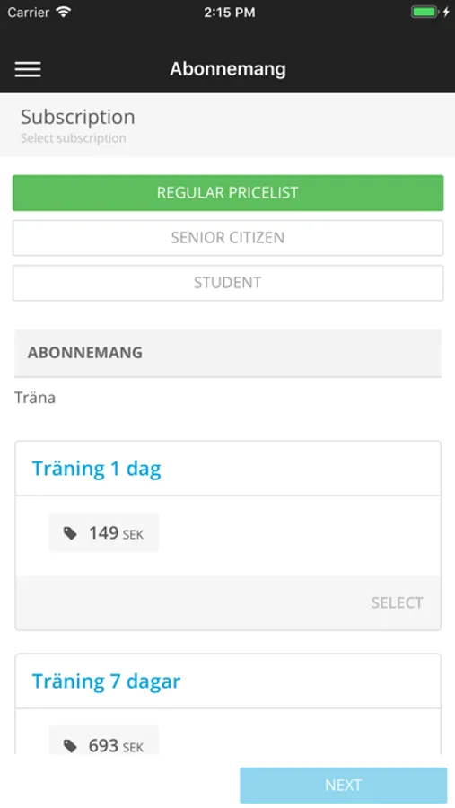 Logga in i appen med samma användarnamn och lösenord som i vår internetbokning.