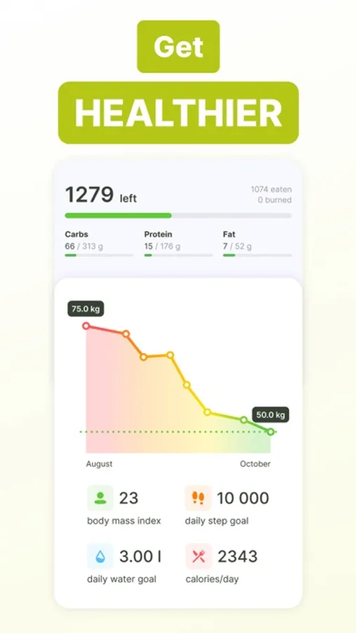 You can also track fitness activities like workouts or walking in the app or connect Health app to synchronize your results. This feature helps you balance your daily calorie intake and reach your goals of weight loss or weight gain. You can unlock personal achievements by exercising consistently and tracking your calories.