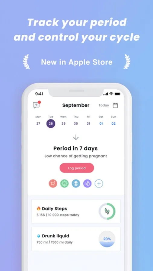 The application makes it possible to track the features of the menstrual cycle, maintain a drinking balance, maintain daily physical activity, control specific symptoms, and receive professional useful tips.