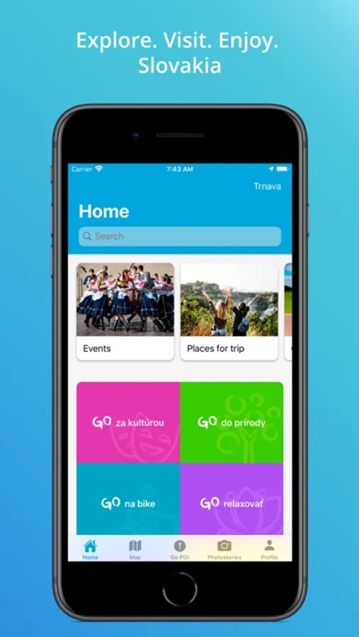 You can discover the unknown, visit interesting places, experience regional products and attractions from all over Slovakia with this app. Be active, download the new app GoSlovakia and start being GO. Use it wherever you get off your car or train, jump off a bike, or walk.