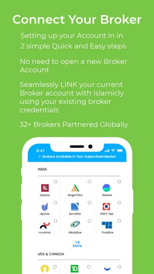 Collaboration with over 32+ leading stock brokers globally ensures access to a wide range of global Muslims