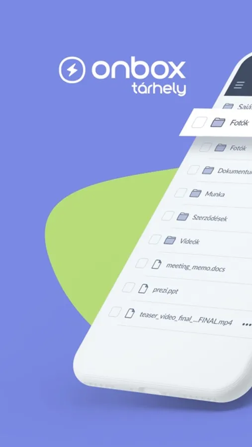 A hivatalos Onbox Tárhely alkalmazás biztonságos felhő tárhely megoldás bárhol és bármikor használható iPhone készülékén.