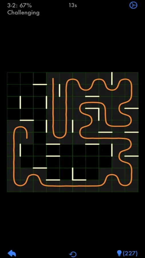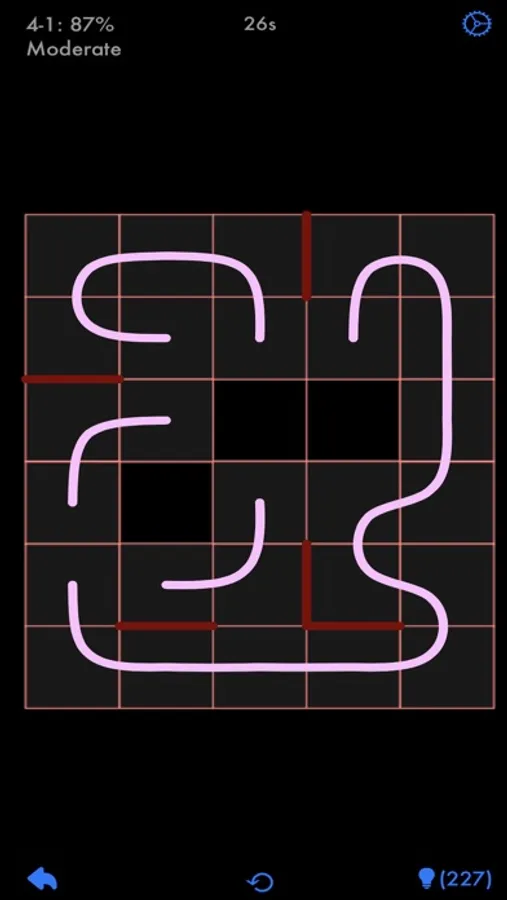 To get the hang of things, start with one of the simple 4x4 grids. Plot your moves carefully. Try to think ahead; not just by one square, but by four or five. If you think you've made a mistake, trace back over your line. It will disappear.