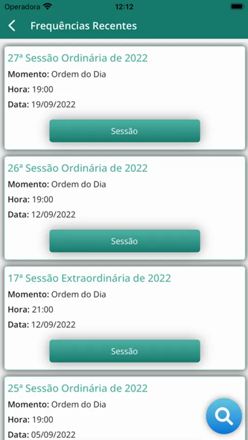 • Consulta a Frequência de Vereadores, com as presenças, ausências, falta justificadas, e licenças, exibindo a data/hora, número e tipo da sessão.