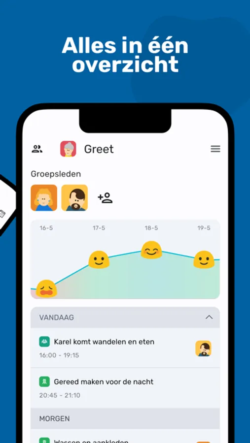 Welkom bij de Mantelzorger App! De allerbeste ondersteuning bij mantelzorg! De app maakt het eenvoudig om samen zorg te verlenen of te ontvangen. Creëer in een paar simpele stappen een zorggroep met je familie, vrienden, buren en kennissen. Zie direct wie er meegaat naar die afspraak bij de dokter, hoe het gaat, wie de boodschappen brengt en weet of de medicijnen zijn ingenomen. De app bied je veel handige functies die je als mantelzorger of als zorgvrager ontlast in het geregel en georganiseer, zodat er meer tijd overblijft voor waar het echt over gaat.