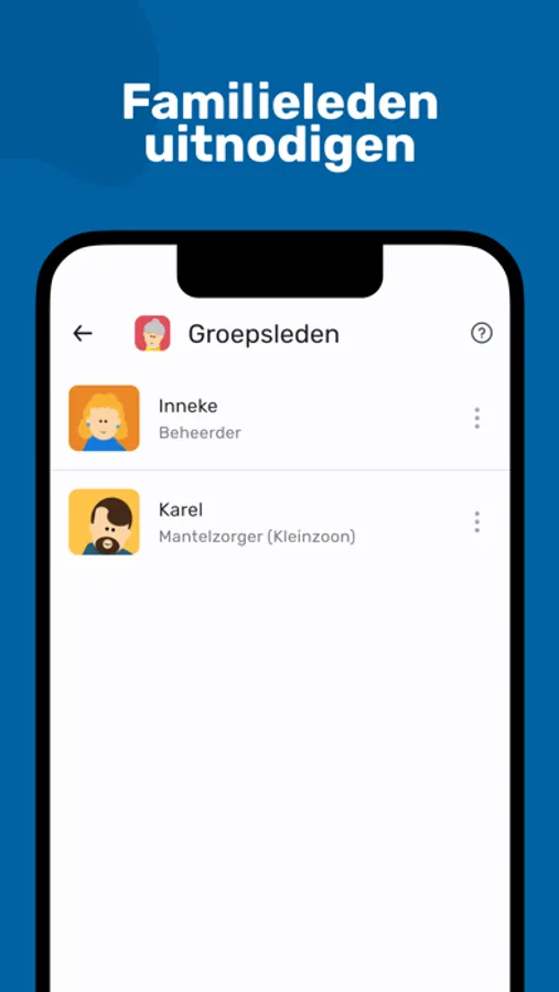In de App kunnen allerlei contacten worden vastgelegd zoals buren, familie, huisarts, apotheek, ziekenhuis, taxidiensten en nog veel meer! Handig, want iedereen beschikt dan over de juiste contact- en adresgegevens.