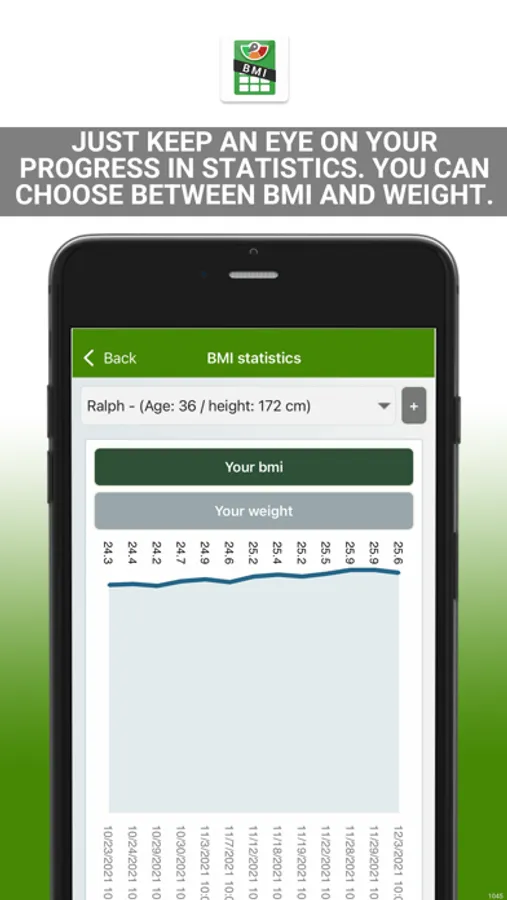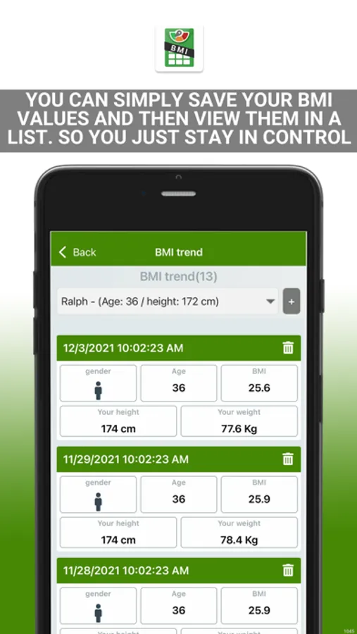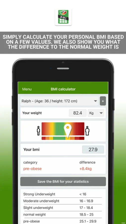 In the process, you can enter and save your BMI values and clearly track your successes in the BMI statistics.