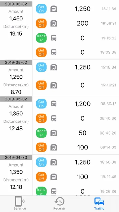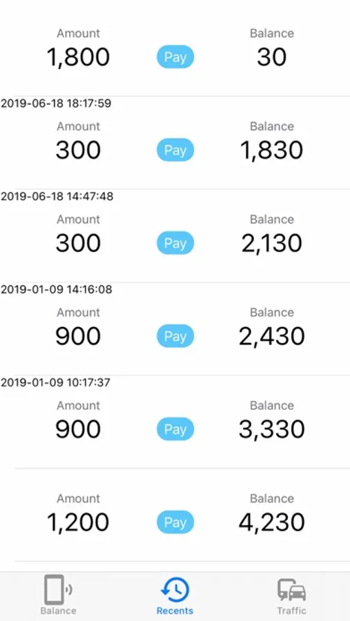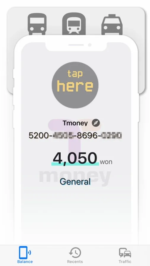 - Recent transactions and recent traffic details can be checked by touching the tabbar menu.