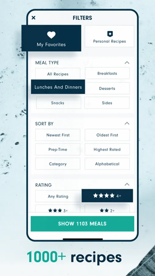 • Swap out any recipe for one of 1000+ recipes in our library.