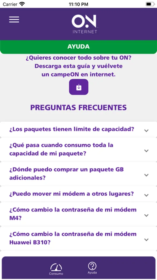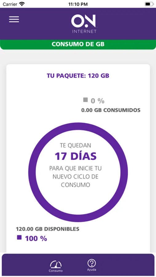 • Consultar la capacidad de tu paquete ON Inalámbrico: Gigabytes consumidos y disponibles en tu ciclo.
