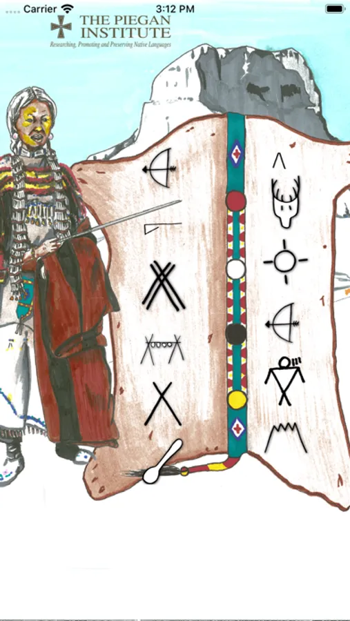 See different Piegan Pictographs organized into categories, each one playing the audio of a native speaker when touched.