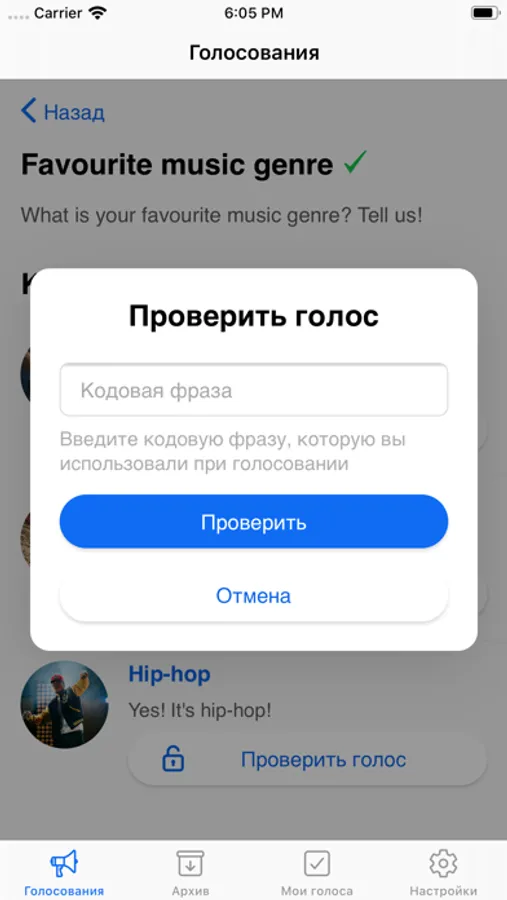 Для отправки голоса необходима авторизация в системе ТГУ.Аккаунты.